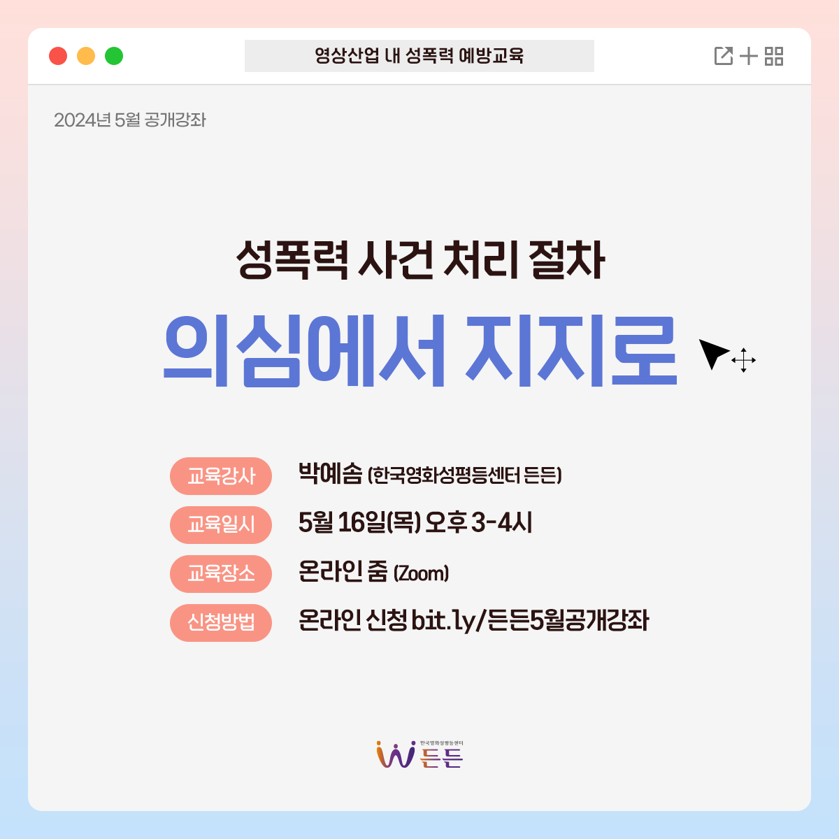 5월 영상산업 내 성폭력 예방교육 공개강좌
