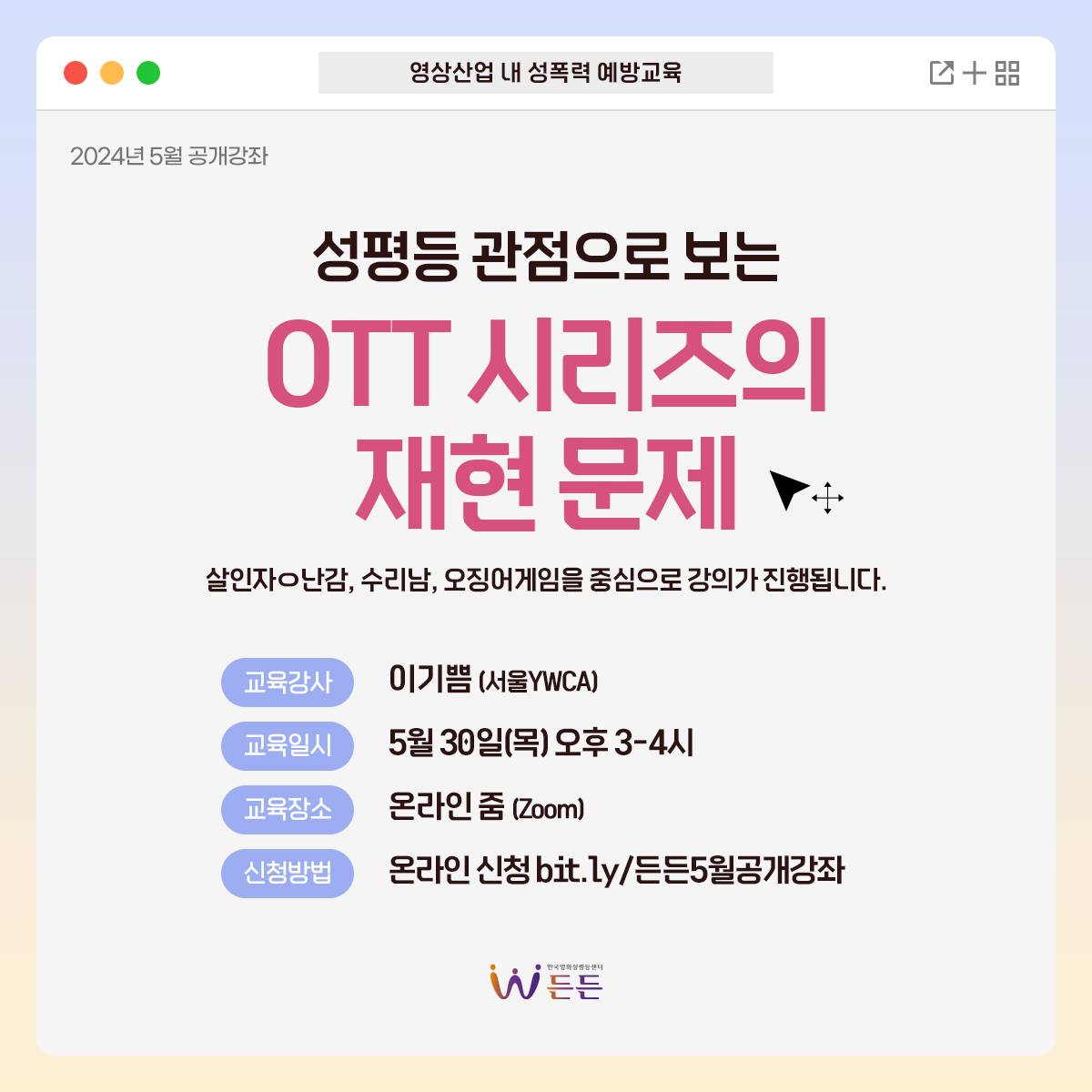 📌 [공개강좌] 성평등 관점으로 보는 OTT 시리즈의 재현 문제