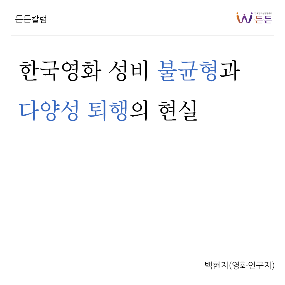 한국 영상산업의 성평등 이슈를 다루는 든든칼럼, 올해 첫 칼럼은 백현지 영화연구자가 작성해주셨습니다.