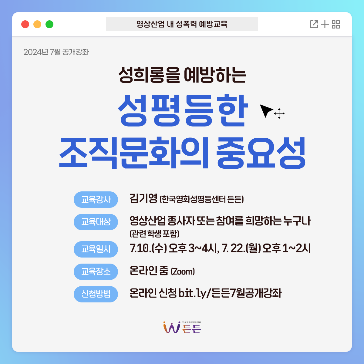 성폭력은 ‘개인의 악마성’으로 인해서 갑작스럽게 발생한 것이라기보다는 평소 그 사람이 가져왔던 무의식적인 습관, 잘못된 조직문화에 의해서 발생한 것일 수 있어요. 그렇기에 “성평등한, 안전한 공간이 되게 하려면 어떻게 해야 할까?”라는 고민이 있으시다면, “내가 속한 조직 전체의 사람들과 어떤 문화를 약속해야 하는가?”라는 질문으로 바꿔보세요. 나의 주변 사람들과 함께 논의를 시작해 보시길 바랍니다. 든든이 함께하겠습니다!