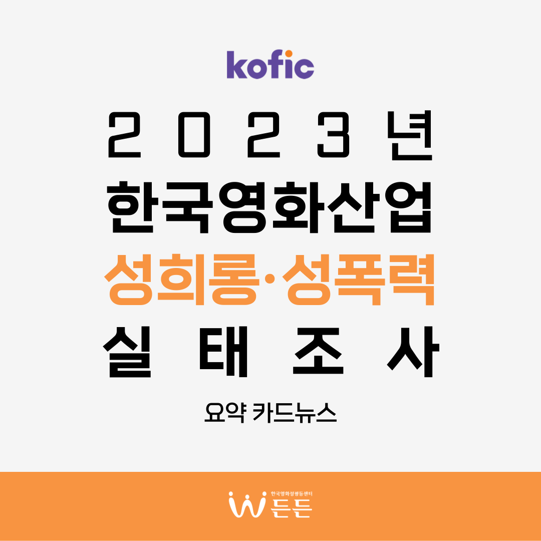 한국영화진흥위원회와 (사)여성영화인모임은 영화계 성희롱·성폭력 문제 해결을 위해 2017년, 2019년에 이어 작년인 2023년에도 한국영화산업 성희롱·성폭력 실태조사를 실시하였습니다.