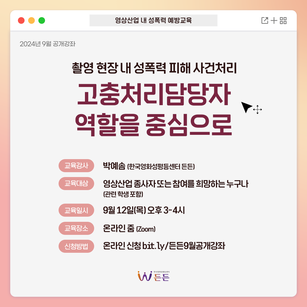 한국영화성평등센터 든든에서 2024 다양성 교육 ✨CINEMA FOR ALL: 든든과 함께하는 다양성 찾기 프로젝트✨를 진행합니다!