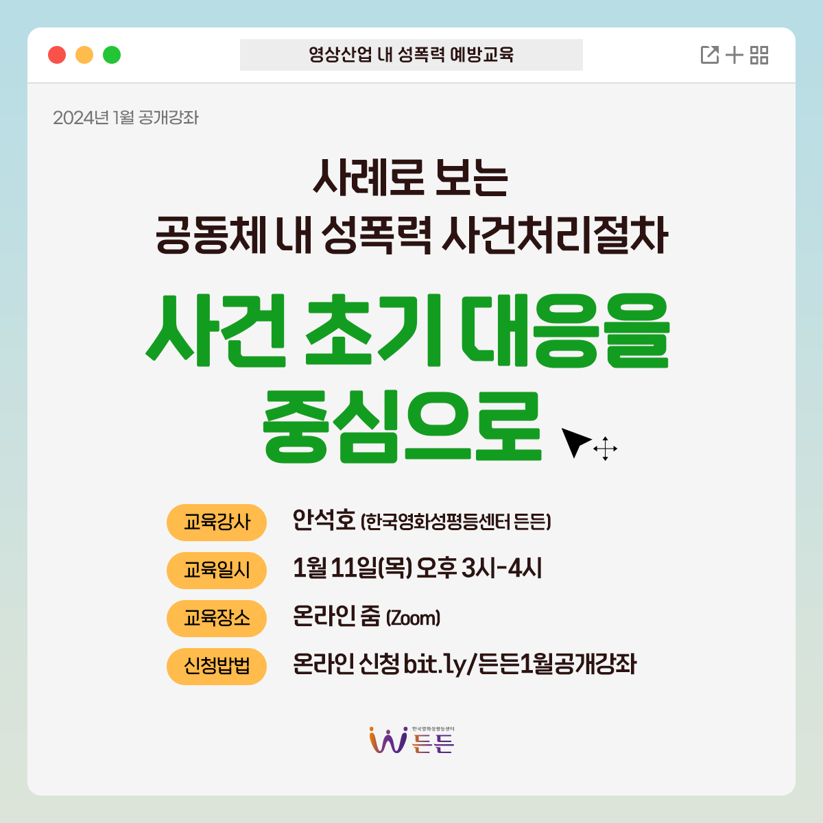 📌 1월 영상산업 내 성폭력 예방교육 공개강좌