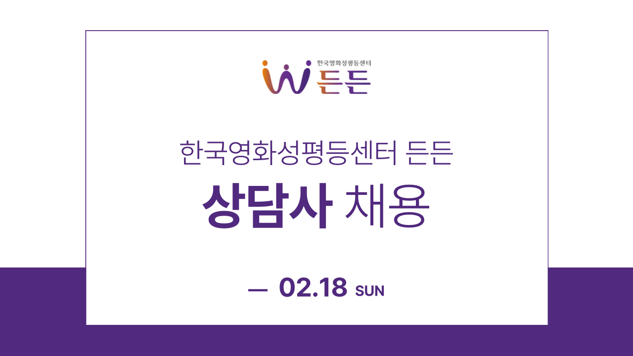 📌 한국영화성평등센터 든든 상담사 채용 (~2/18)